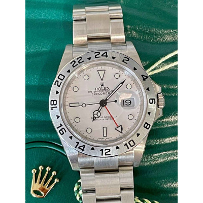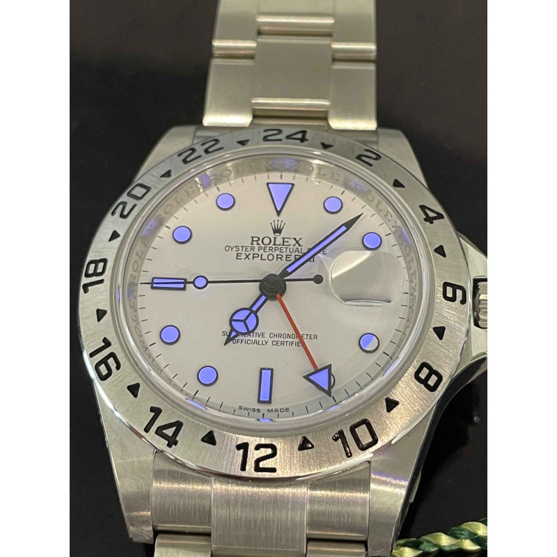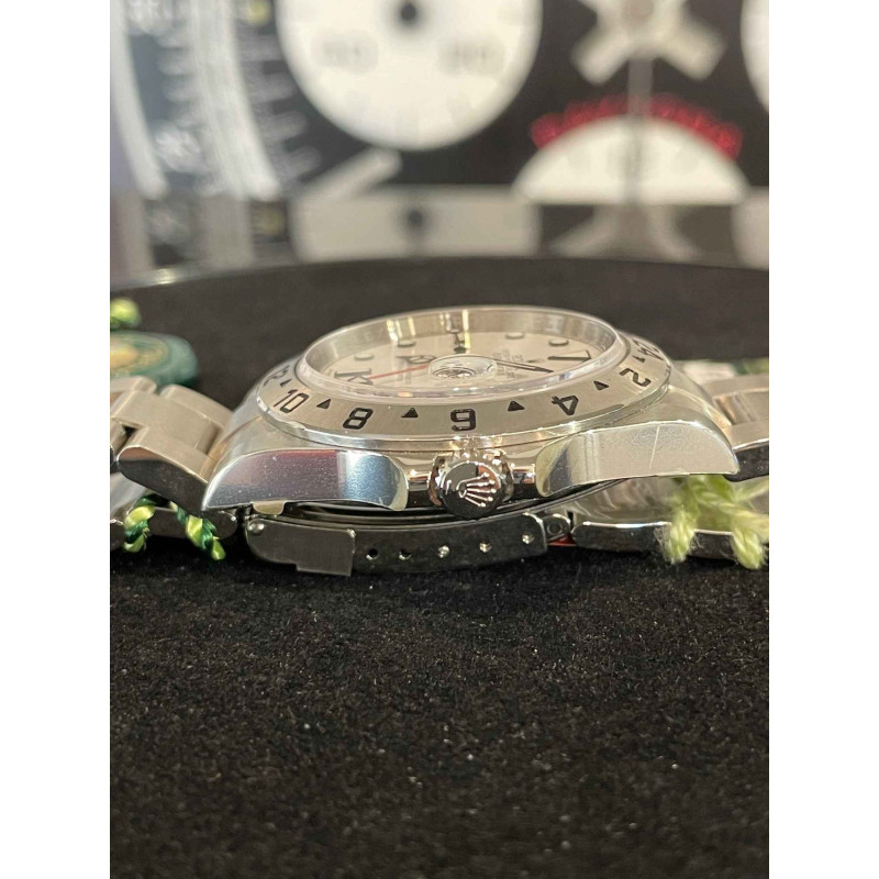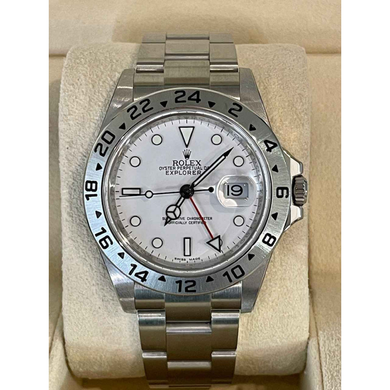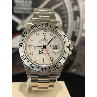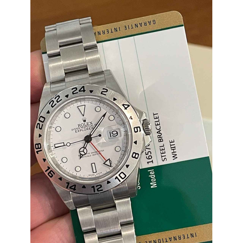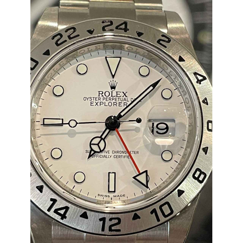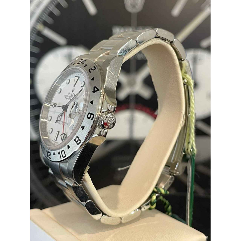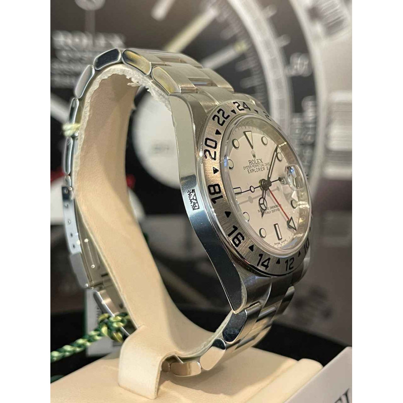 Laurenti Orologi propone un Rolex Explorer II Ref 16570 movimento carica automatica calibro 3186, indicatore secondo fuso orario, cassa in acciaio da 40mm., vetro zaffiro, quadrante bianco. Bracciale oyster in acciaio. Impermeabile 10 ATM.