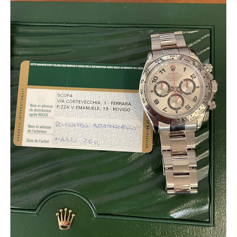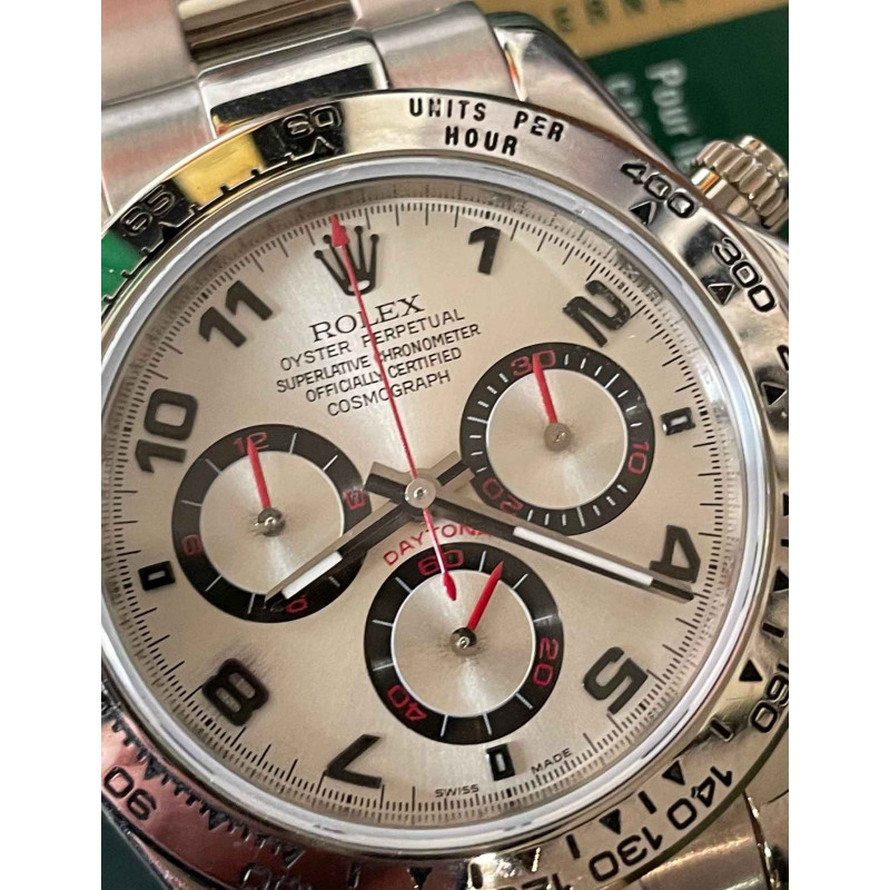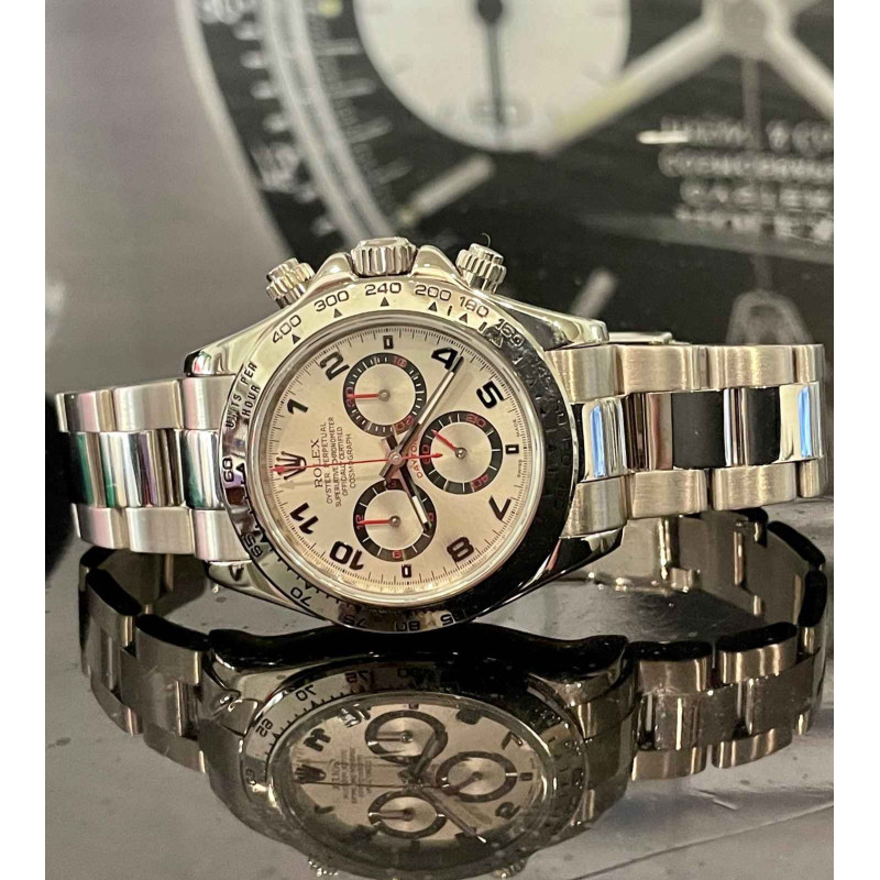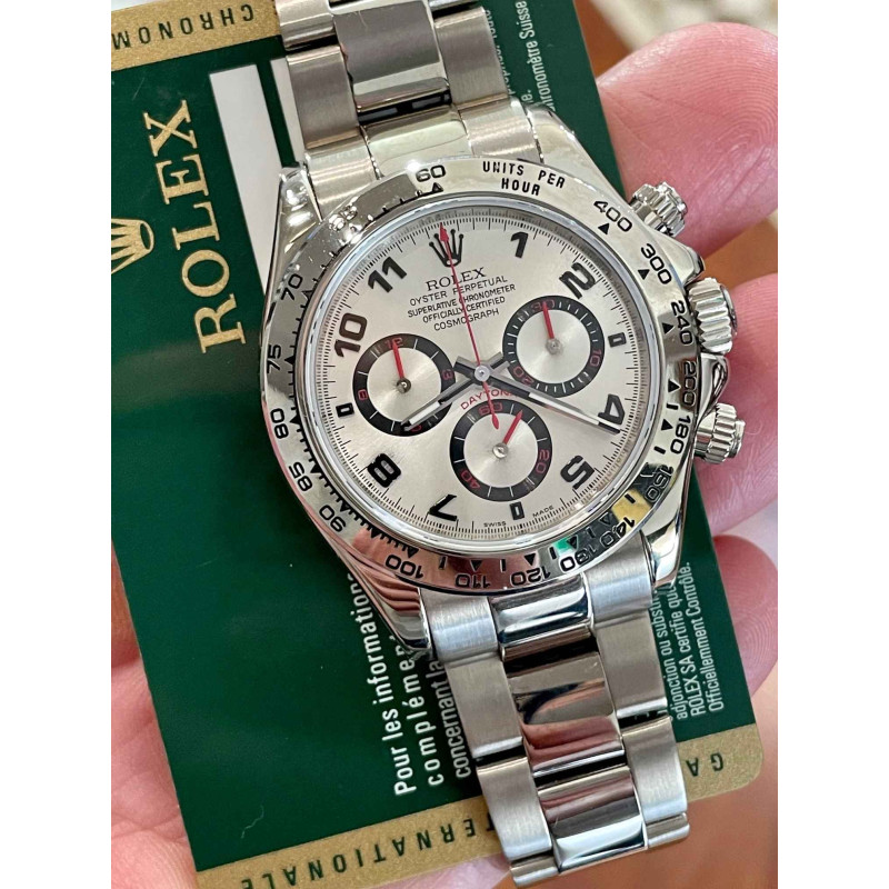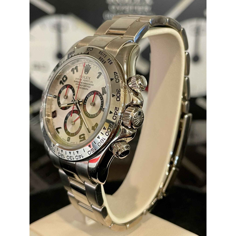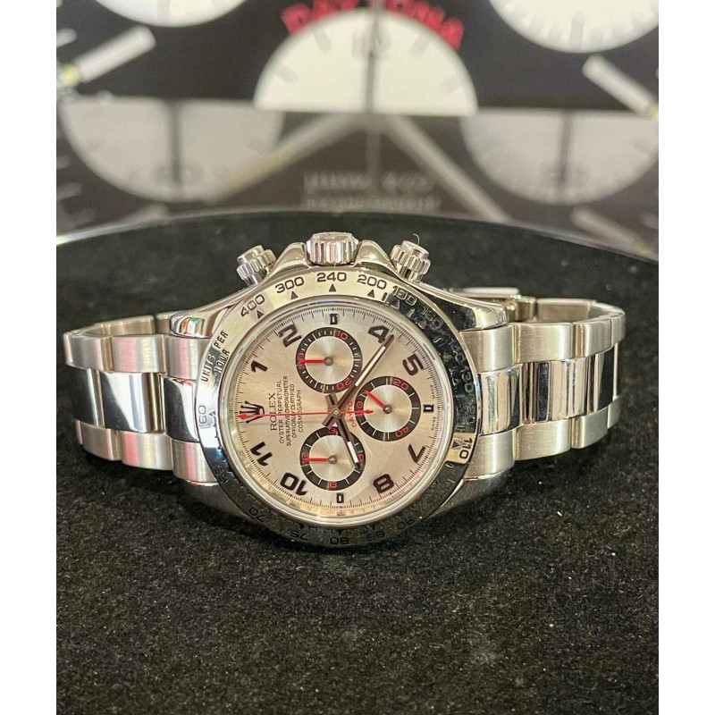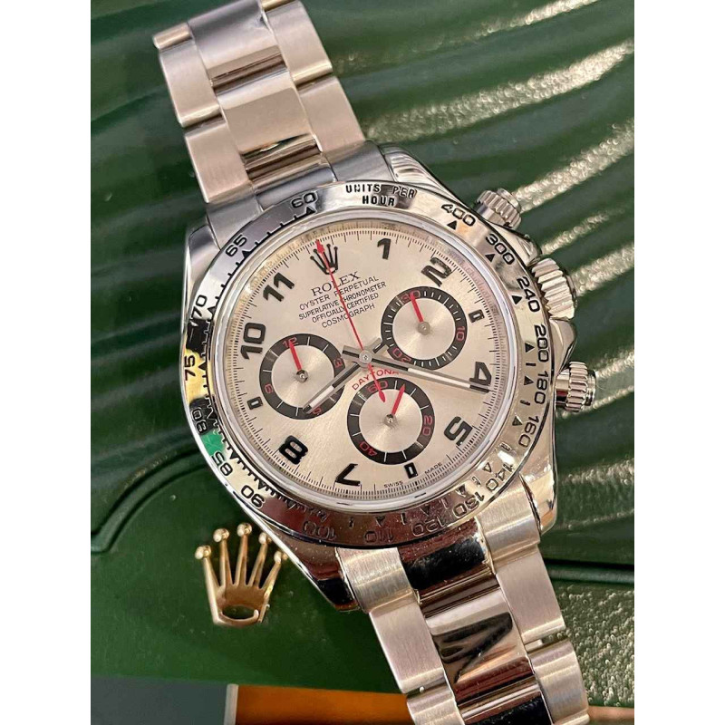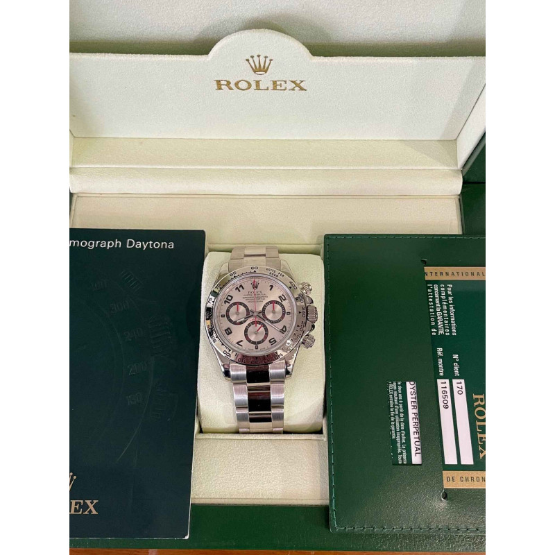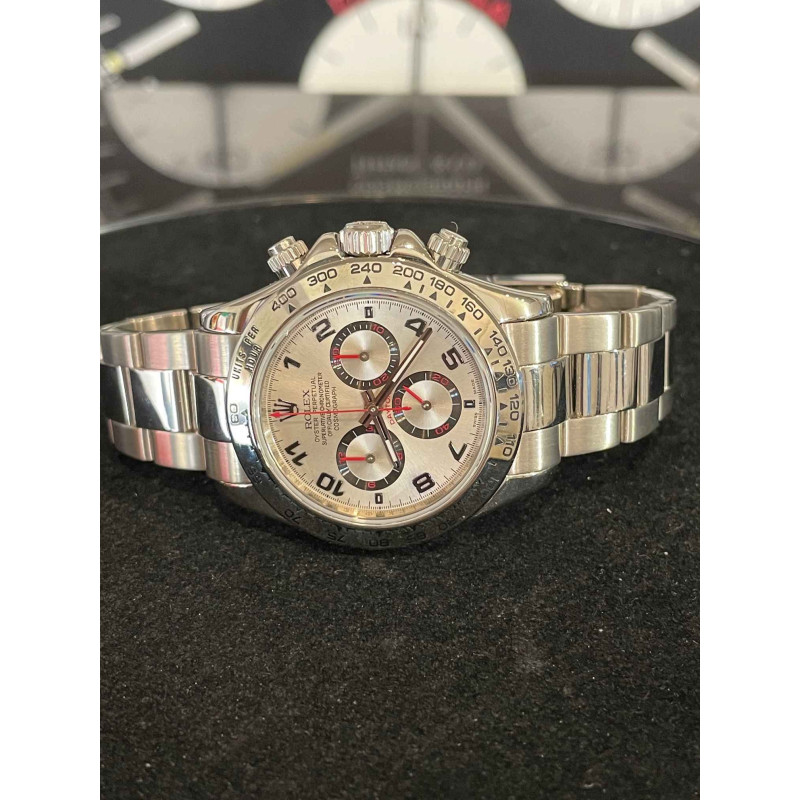 Laurenti Orologi propone un Rolex Daytona Ref 116509, meccanico a carica automatica calibro 4130, cassa in oro bianco da 40mm., vetro zaffiro, quadrante silver, crono a tre contatori, bracciale oyster in oro bianco , fermaglio di sicurezza Oysterlock con chiusura pieghevole e maglia di prolunga rapida Easylink di 5 mm in oro bianco.